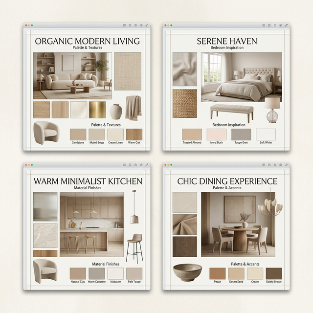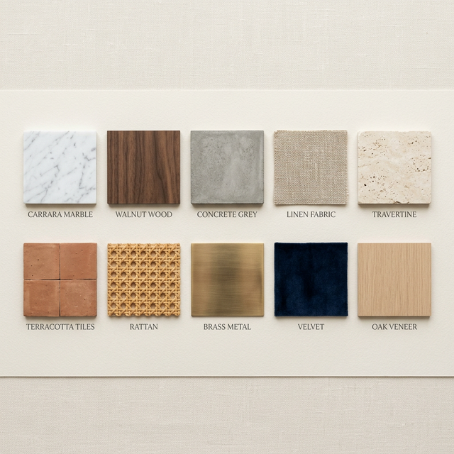 High-res material swatches for every project type — from minimal Scandinavian to bold maximalist.